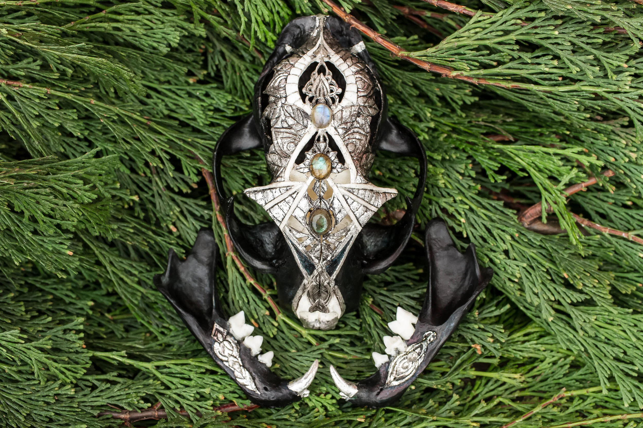 Each skull design is unplanned, working with the natural energies of the skull. My job is that of a medium, to listen and not dictate.